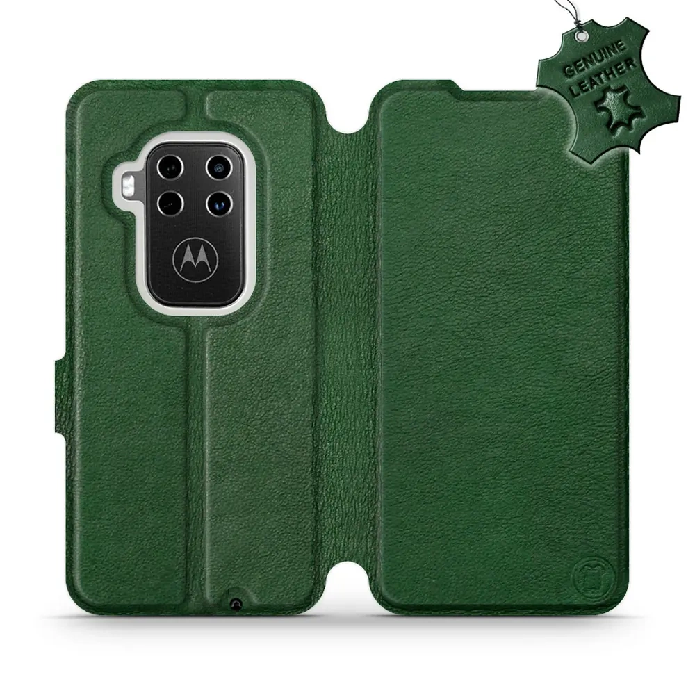 Etui ze skóry naturalnej do Motorola One Zoom - wzór Green Leather