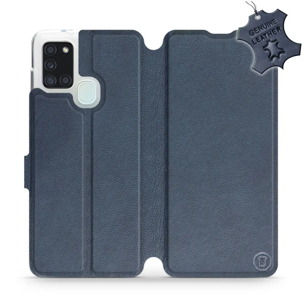 Etui ze skóry naturalnej do Samsung Galaxy A21S - wzór Blue Leather