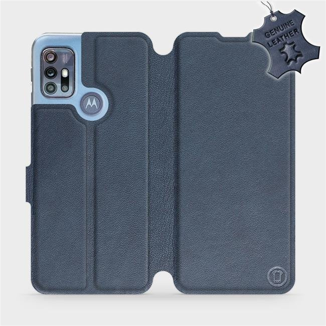 Etui ze skóry naturalnej do Motorola Moto G20 - wzór Blue Leather