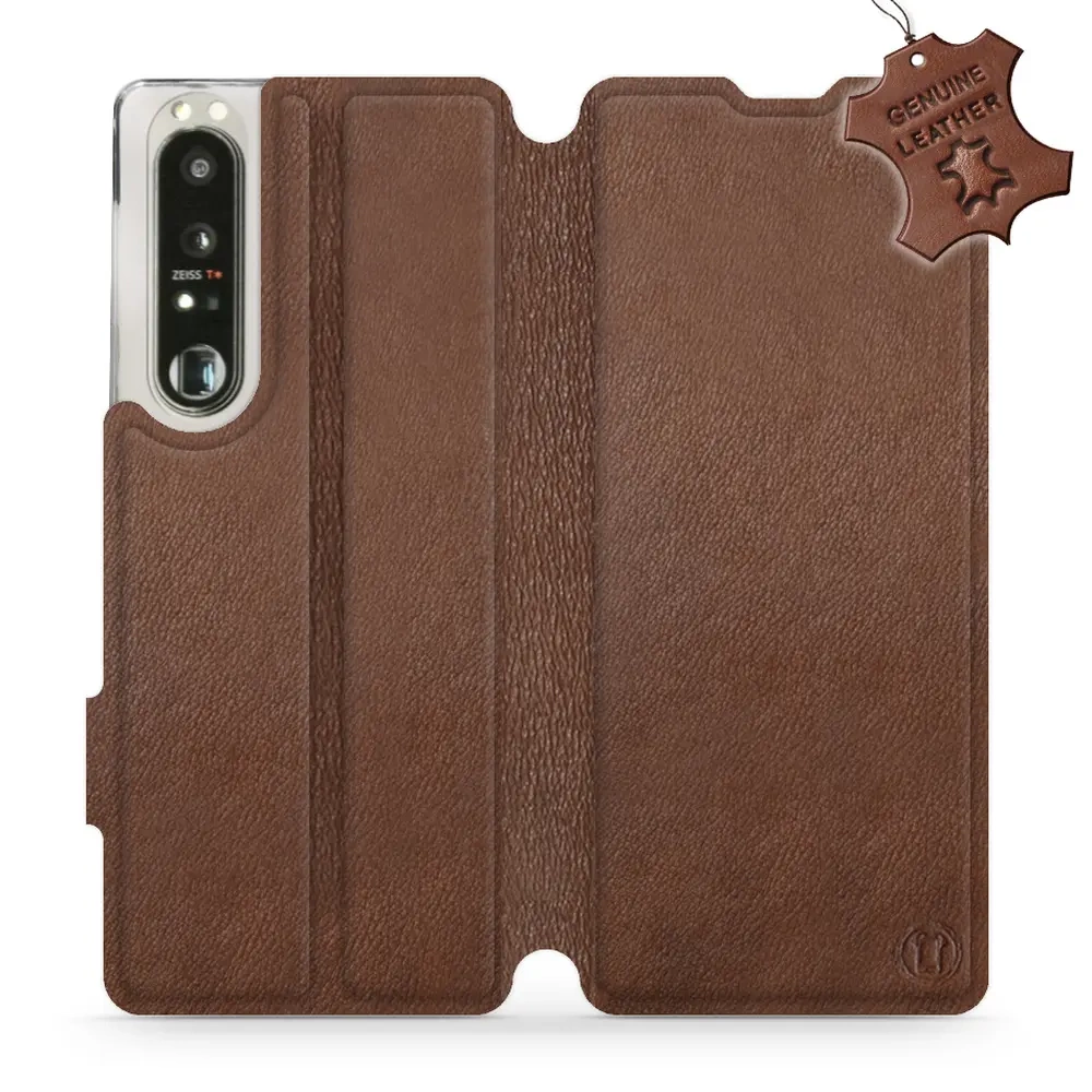 Etui ze skóry naturalnej do Sony Xperia 1 III - wzór Brown Leather