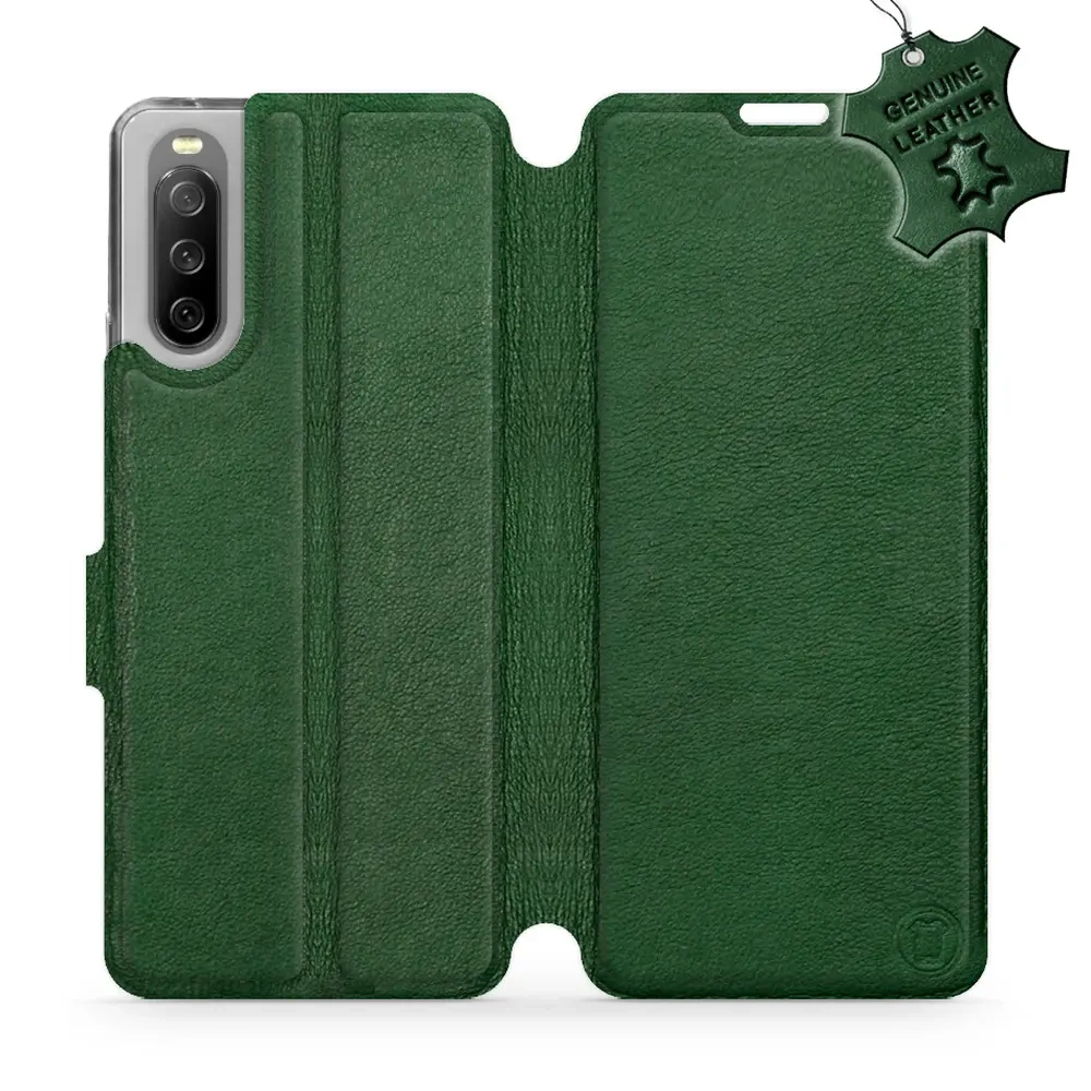 Etui ze skóry naturalnej do Sony Xperia 10 III - wzór Green Leather