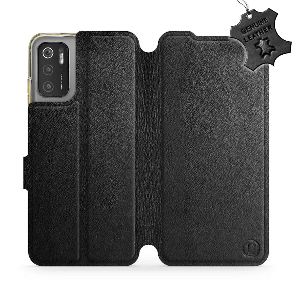 Etui ze skóry naturalnej do Xiaomi POCO M3 Pro 5G - wzór Black Leather