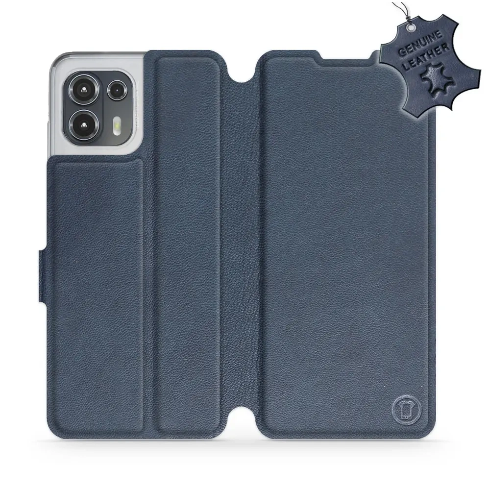 Etui ze skóry naturalnej do Motorola Edge 20 Lite - wzór Blue Leather