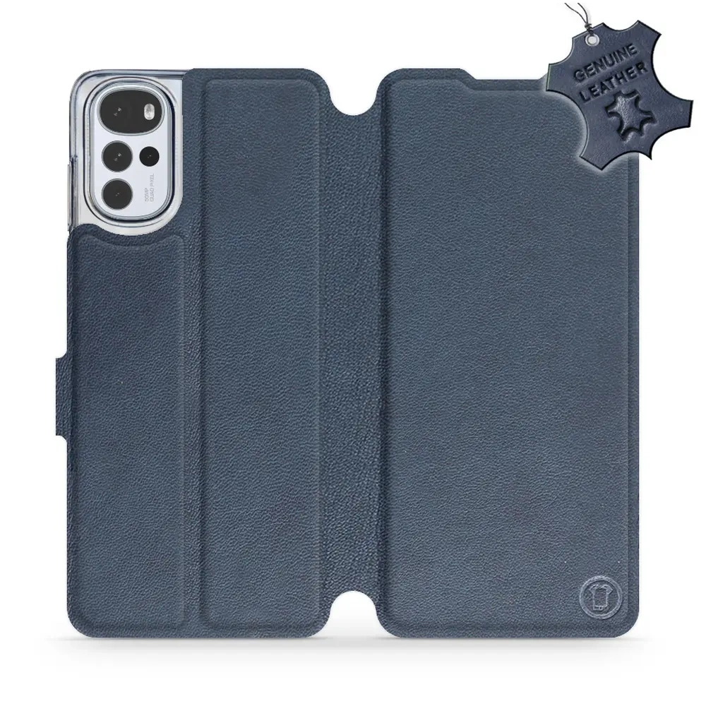 Etui ze skóry naturalnej do Motorola Moto G22 - wzór Blue Leather