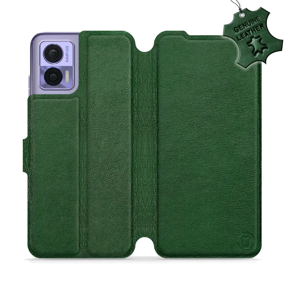 Etui ze skóry naturalnej do Motorola Edge 30 Neo - wzór Green Leather