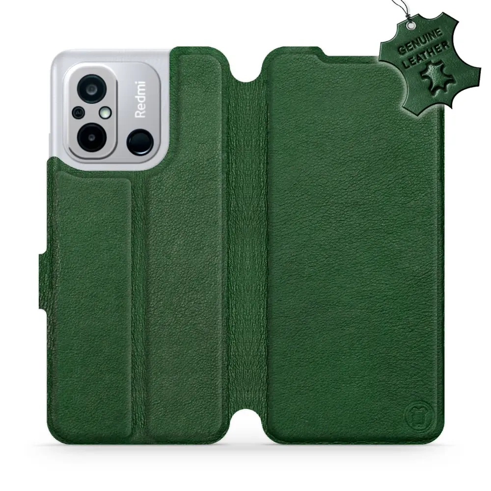 Etui ze skóry naturalnej do Xiaomi Redmi 12C - wzór Green Leather