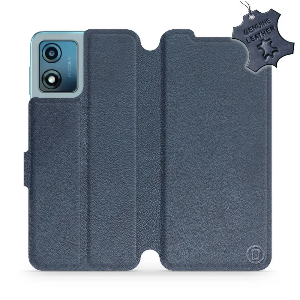 - Etui z klapką marki Mobiwear wykonane w Polsce. Etui ze skóry naturalnej do Motorola Moto E13 - wzór Blue Leather