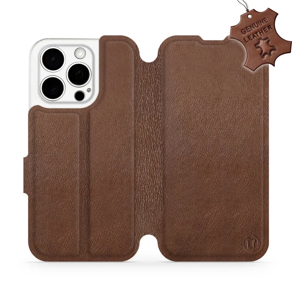Etui ze skóry naturalnej do Apple iPhone 15 Pro - wzór Brown Leather