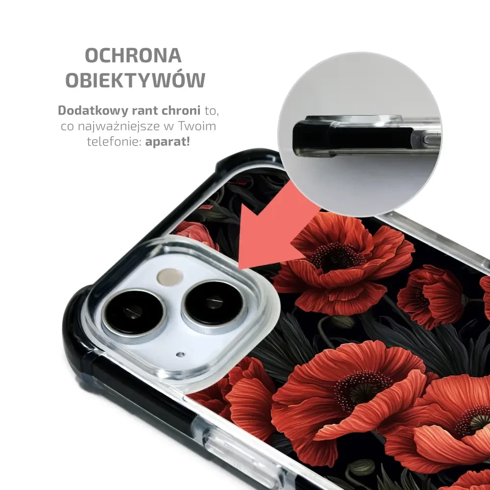 Etui jest wyposażone w podniesione krawędzie wokół ekranu i obiektywu aparatu, zapewniając dodatkową warstwę ochrony.