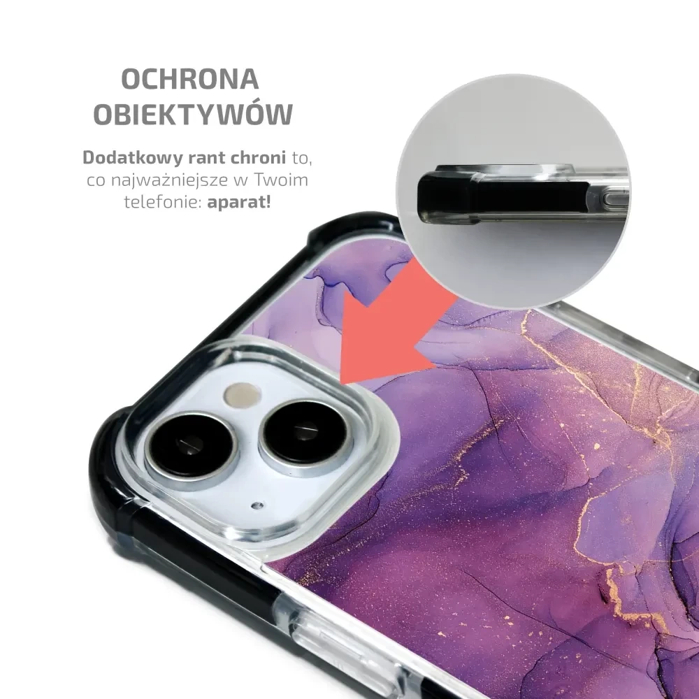 Etui jest wyposażone w podniesione krawędzie wokół ekranu i obiektywu aparatu, zapewniając dodatkową warstwę ochrony.