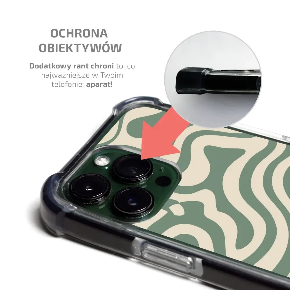 Etui jest wyposażone w podniesione krawędzie wokół ekranu i obiektywu aparatu, zapewniając dodatkową warstwę ochrony.