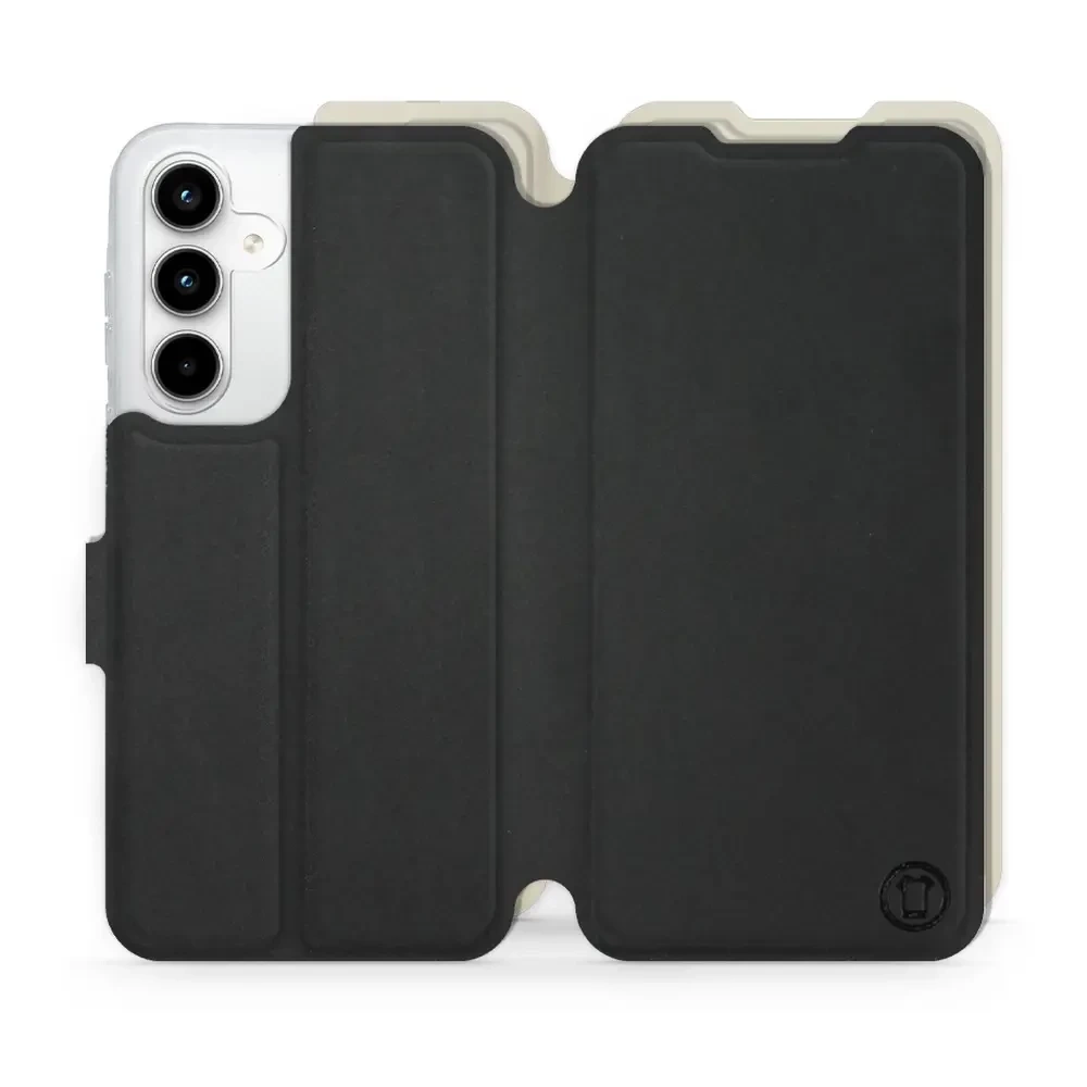 • Etui z klapką marki Mobiwear wykonane w Polsce. Etui Soft Touch do Samsung Galaxy A35 5G - wzór Satynowa czerń z platyną