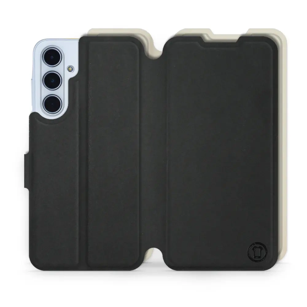 - Etui z klapką marki Mobiwear wykonane w Polsce. Etui Soft Touch do Samsung Galaxy M35 5G - wzór Satynowa czerń z platyną