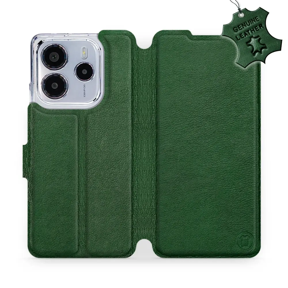 Etui ze skóry naturalnej do Xiaomi Redmi Note 14 5G - wzór Green Leather