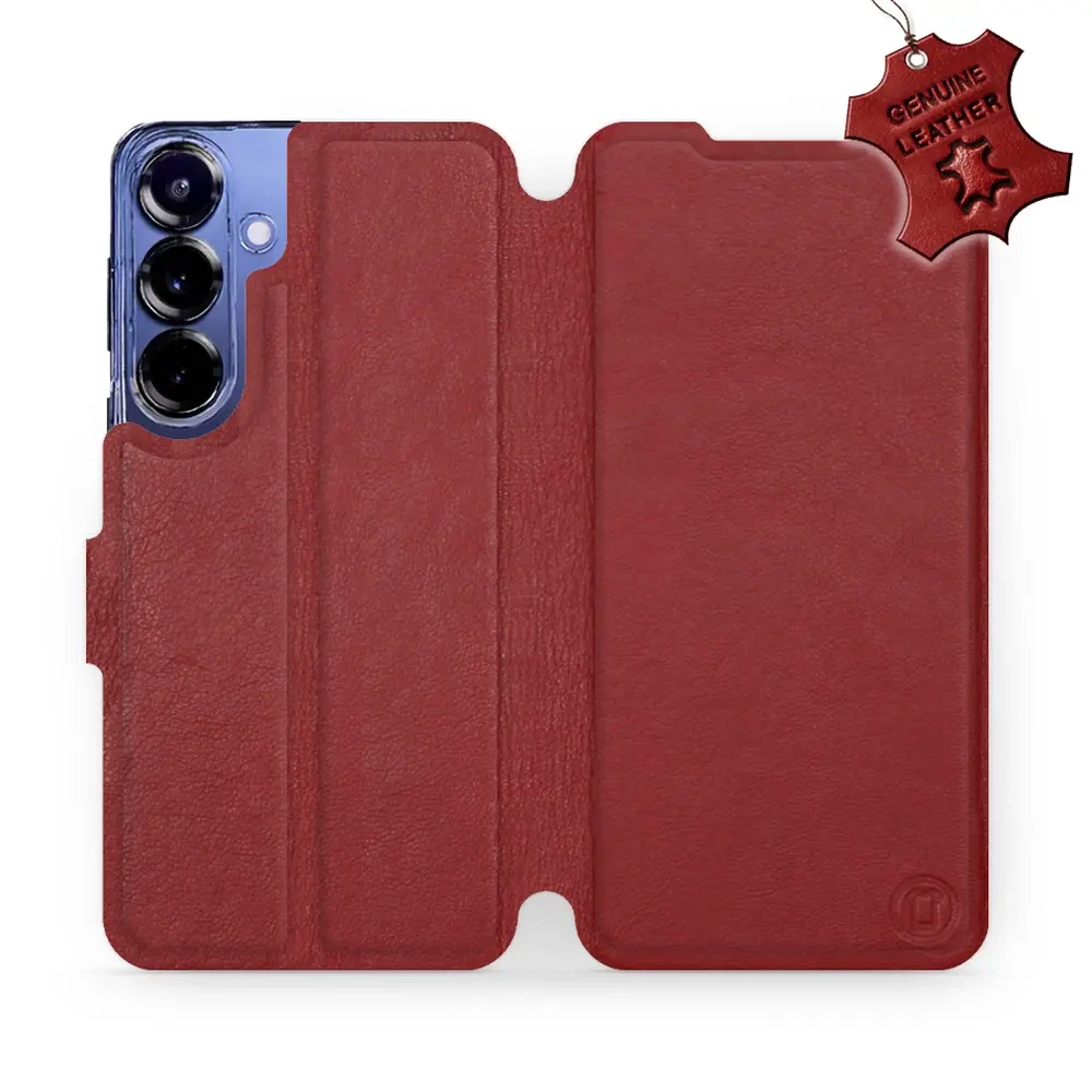 Etui ze skóry naturalnej do Samsung Galaxy S25 Plus - wzór Dark Red Leather