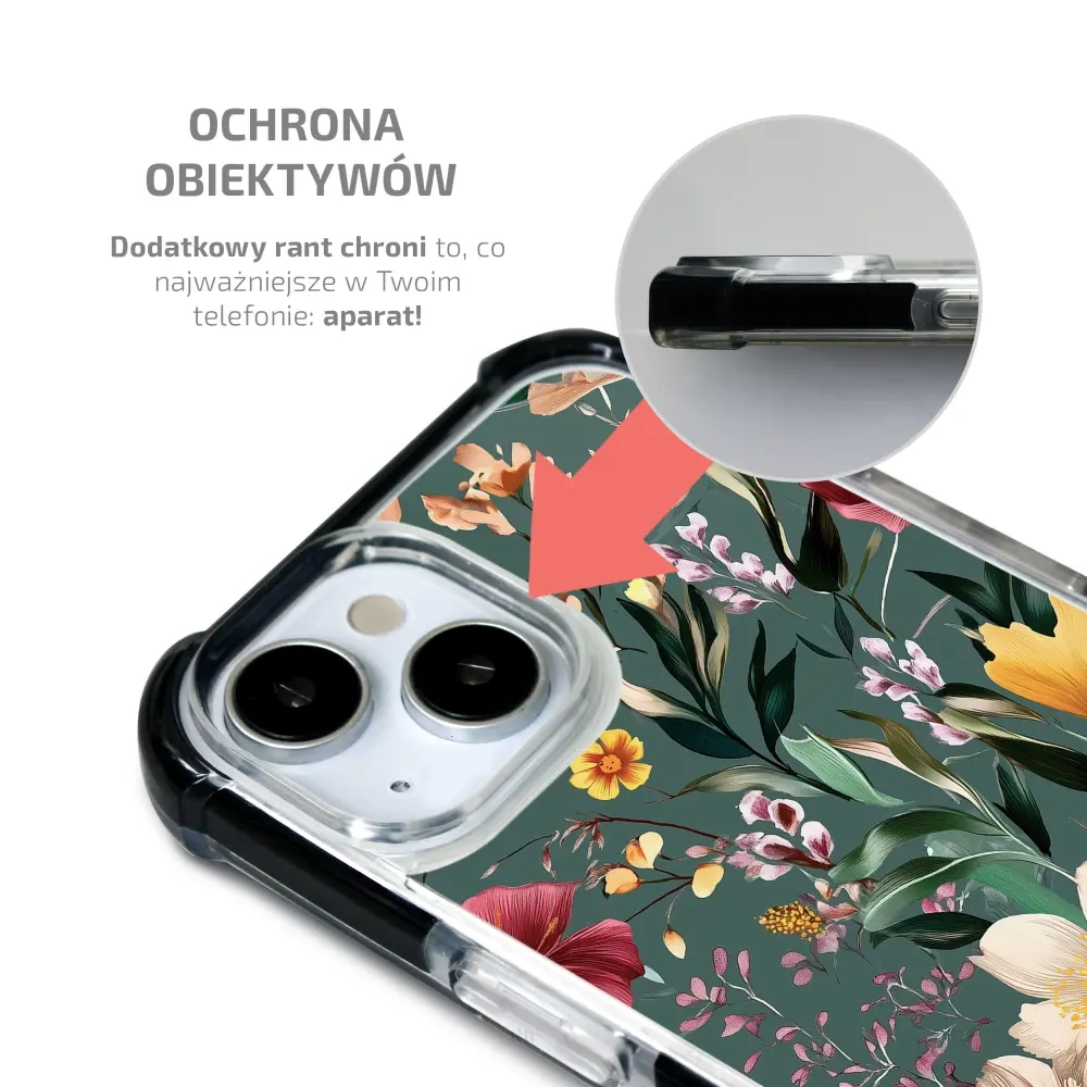 Etui jest wyposażone w podniesione krawędzie wokół ekranu i obiektywu aparatu, zapewniając dodatkową warstwę ochrony.