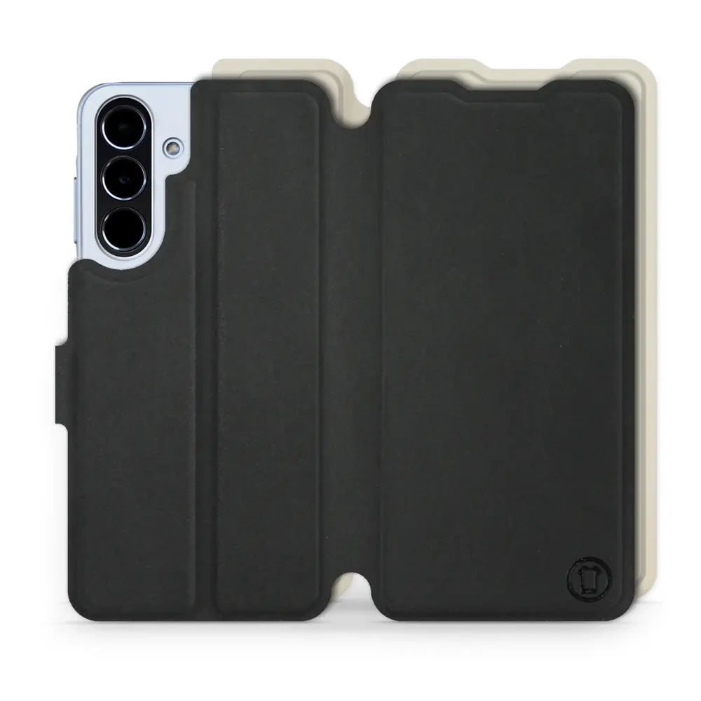 • Etui z klapką marki Mobiwear wykonane w Polsce. Etui Soft Touch do Samsung Galaxy A56 5G - wzór Satynowa czerń z platyną