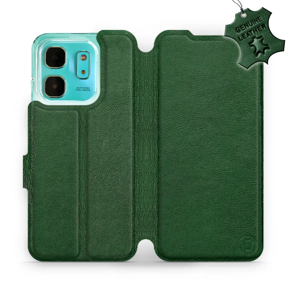 Etui ze skóry naturalnej do Infinix HOT 50i - wzór Green Leather