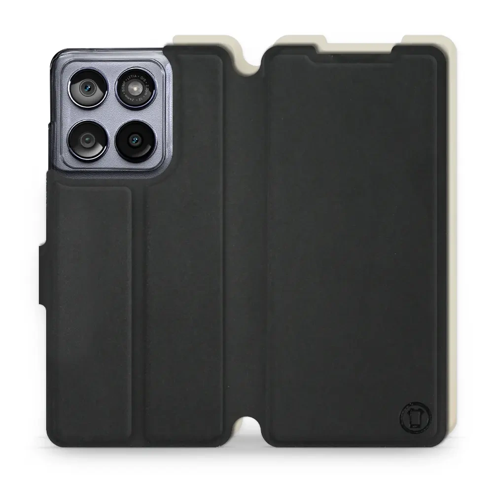 • Etui z klapką marki Mobiwear wykonane w Polsce. Etui Soft Touch do Motorola Edge 60 Fusion - wzór Satynowa czerń z platyną