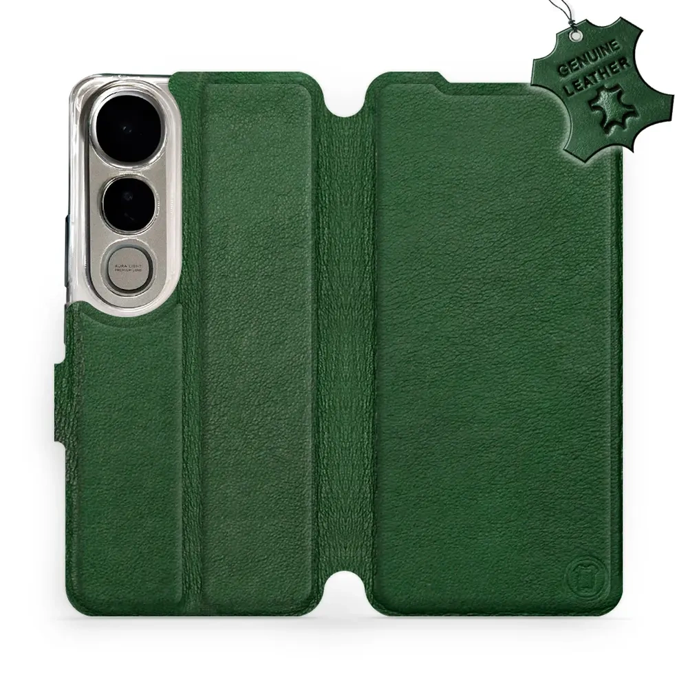 Etui ze skóry naturalnej do Vivo V50 Lite - wzór Green Leather