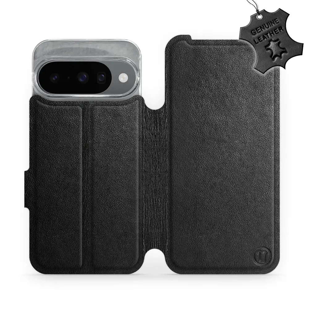 Etui ze skóry naturalnej do Google Pixel 10 - wzór Black Leather