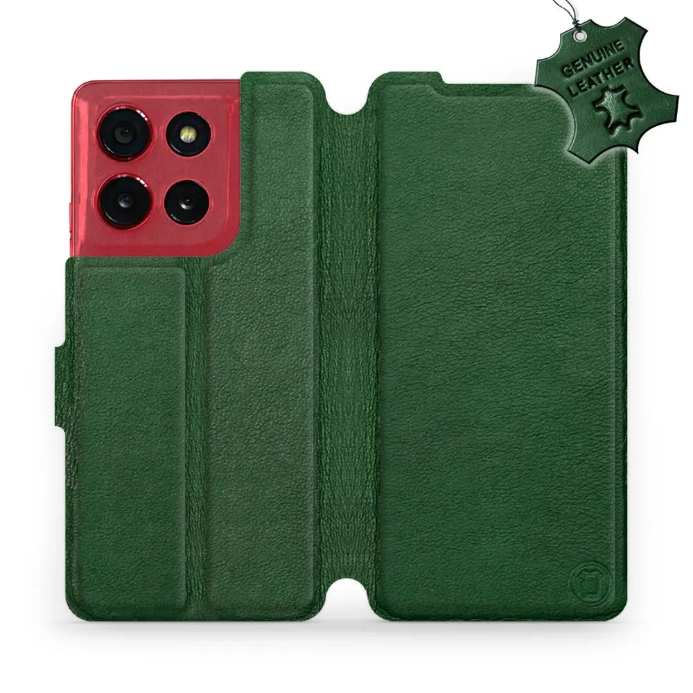 Etui ze skóry naturalnej do Motorola Moto G86 Power 5G - wzór Green Leather
