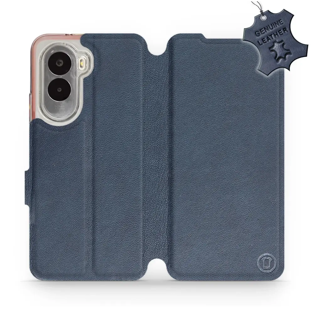 Etui ze skóry naturalnej do Xiaomi POCO M7 - wzór Blue Leather