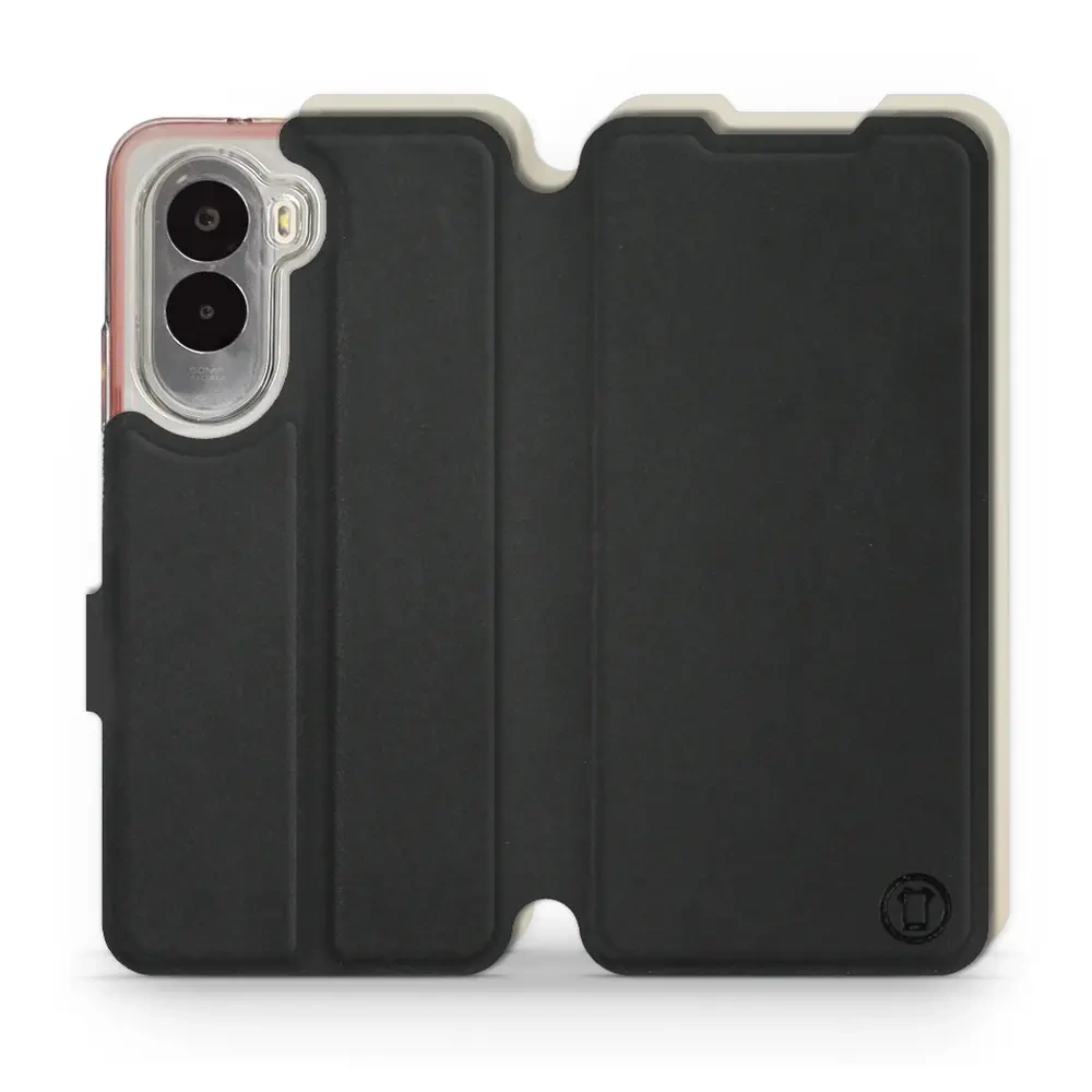 - Etui z klapką marki Mobiwear wykonane w Polsce. Etui Soft Touch do Xiaomi POCO M7 - wzór Satynowa czerń z platyną