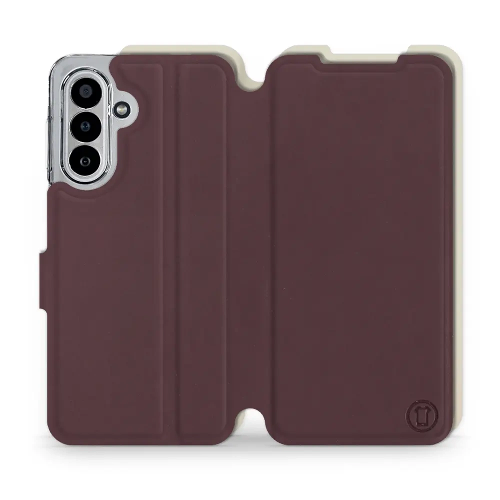• Etui z klapką marki Mobiwear wykonane w Polsce. Etui Soft Touch do Samsung Galaxy A17 5G - wzór Matowy burgund z platyną