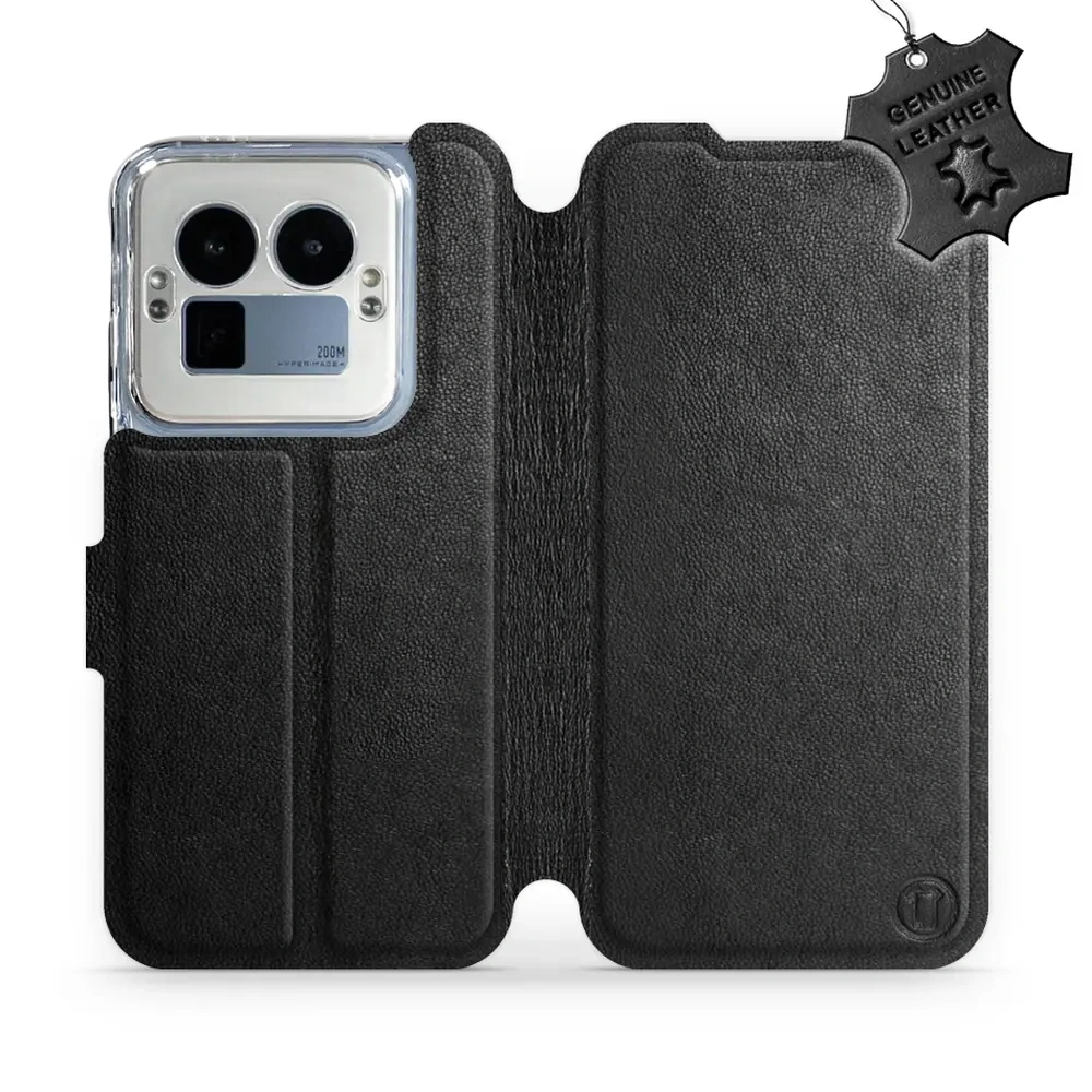 Etui ze skóry naturalnej do Realme GT 8 Pro - wzór Black Leather