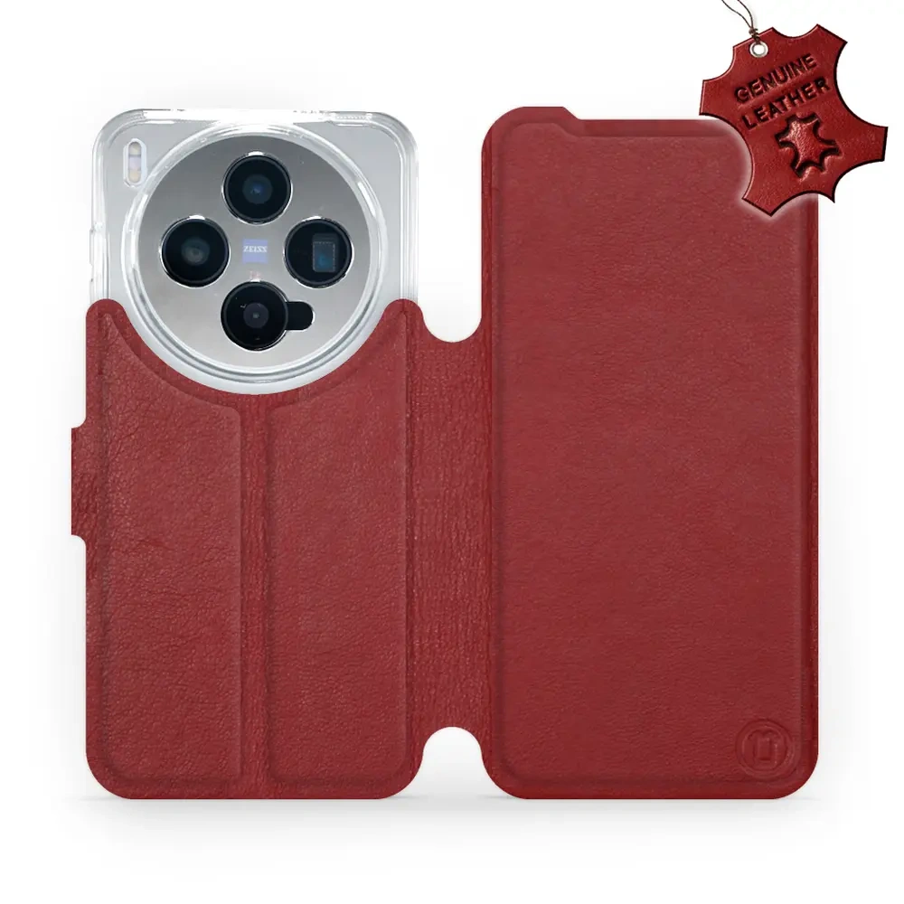 Etui ze skóry naturalnej do Vivo X300 - wzór Dark Red Leather