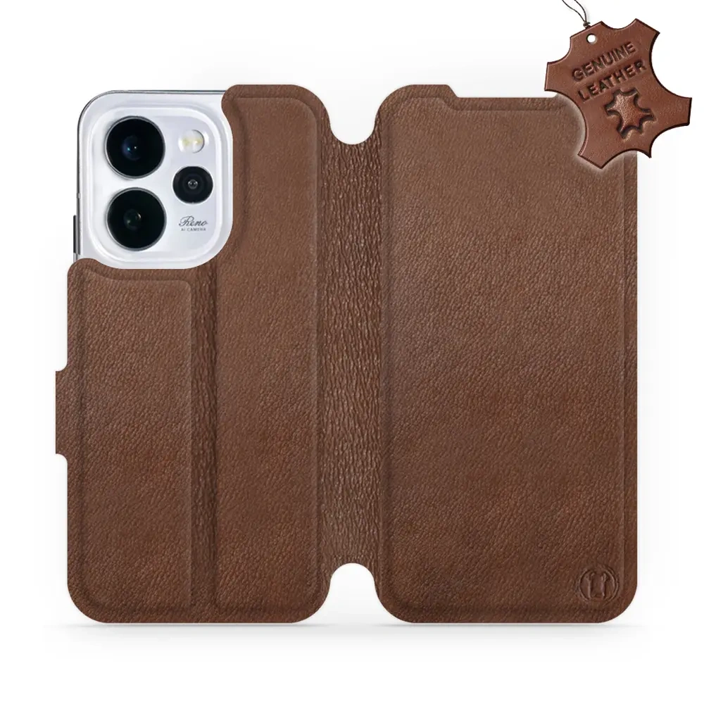 Etui ze skóry naturalnej do OPPO Reno 15 pro - wzór Brown Leather