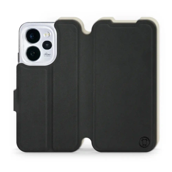 - Etui z klapką marki Mobiwear wykonane w Polsce. Etui Soft Touch do OPPO Reno 15 pro - wzór Satynowa czerń z platyną