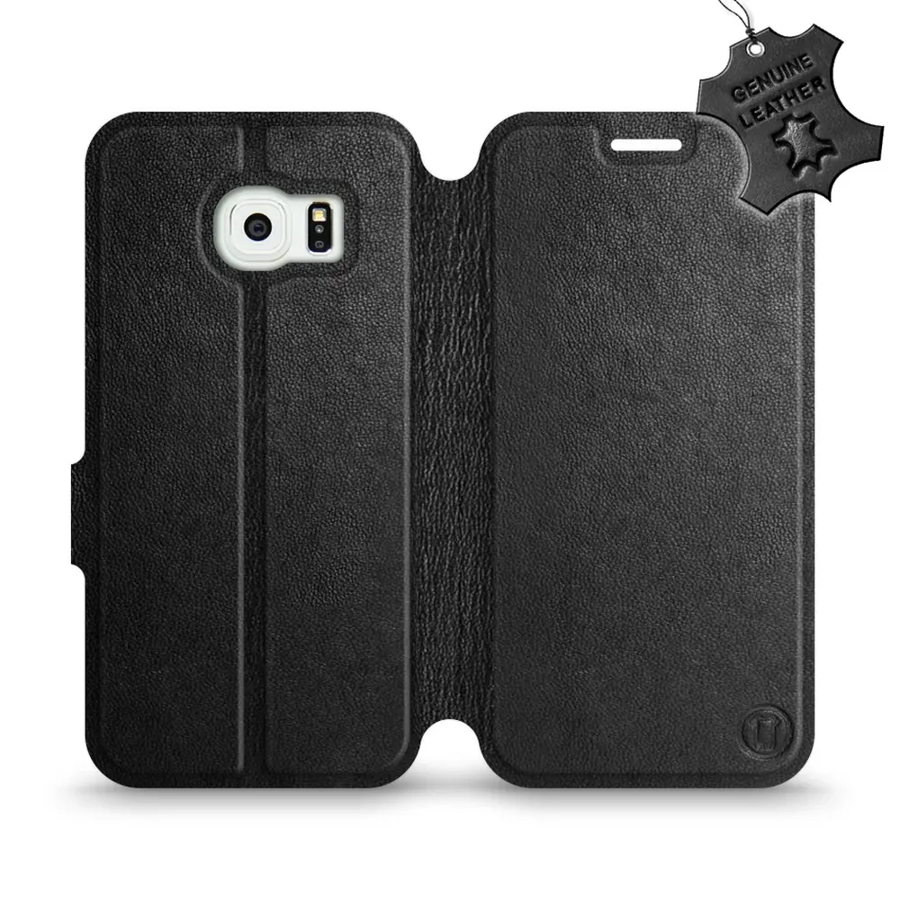 Etui ze skóry naturalnej do Samsung Galaxy S6 Edge - wzór Black Leather