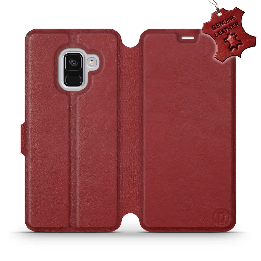 Etui ze skóry naturalnej do Samsung Galaxy A8 2018 - wzór Dark Red Leather