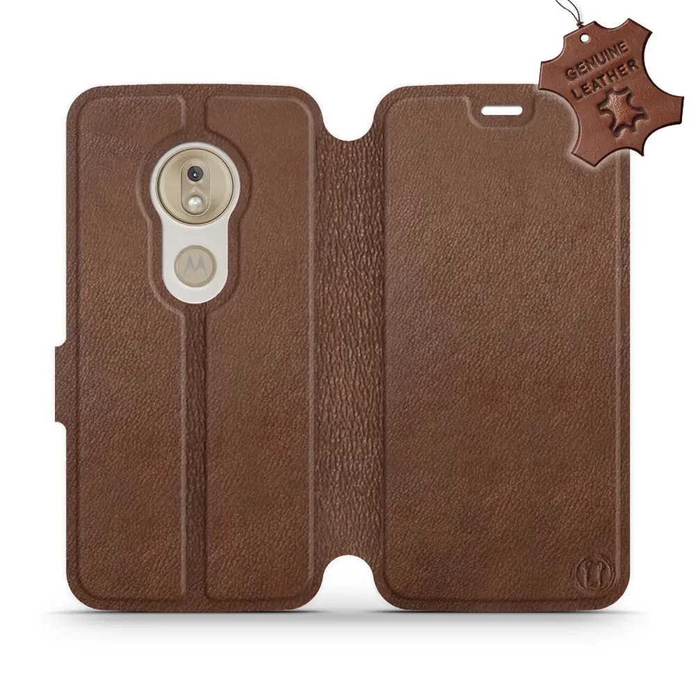Etui ze skóry naturalnej do Motorola Moto G7 Play - wzór Brown Leather