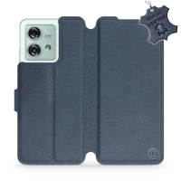 Etui ze skóry naturalnej do Motorola Edge 40 - wzór Blue Leather