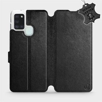 Etui ze skóry naturalnej do Samsung Galaxy A21S - wzór Black Leather