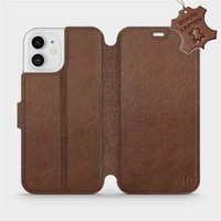 Etui ze skóry naturalnej do Apple iPhone 12 - wzór Brown Leather