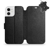 Etui ze skóry naturalnej do Apple iPhone 12 - wzór Black Leather