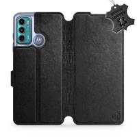 Etui ze skóry naturalnej do Motorola Moto G60 - wzór Black Leather