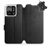 Etui ze skóry naturalnej do Xiaomi Redmi 10C - wzór Black Leather