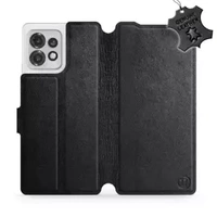 Etui ze skóry naturalnej do Motorola Edge 40 Pro - wzór Black Leather
