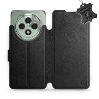 Etui ze skóry naturalnej do OPPO Reno12 F 5G - wzór Black Leather